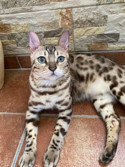 Voor deze knappe sneeuwwitte Bengaal genaamd Chu Chu zijn wij op zoek naar een gouden mandje.